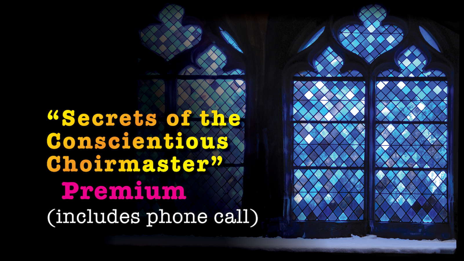 The PREMIUM version of “Secrets of the Conscientious Choirmaster” (9+ hours) includes a personal, 45-minute telephone consultation with Jeff Ostrowski.